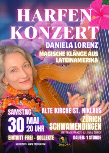 Mit ihrer paraguayischen Harfe entführt Daniela Lorenz das Publikum in die Klangwelt Lateinamerikas – voller Farben, Rhythmen und Emotionen. Feurige Tänze, perlende Klänge und berührende Melodien erzählen von Lebensfreude, Sehnsucht und der Schönheit der Natur.